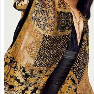 New Free People Beguiled Patchwork Kimono Jacket one size Velvet Burno…