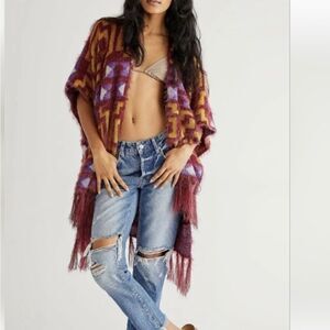 New Free People Diamondback Sweater Soft Knit Kimono Fringed one size
