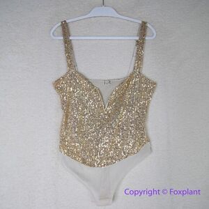New! Free People Intimately Sparks Fly Bodysuit In Gold, size L