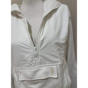 Designed in collaboration with students from our HBCU mentorship program, this pullover from our School Pride capsule collection is featured in a soft cotton fabrication and quarter-zip style with collegiate-inspired patches at the sleeve and oversized kanga pocket detail. *Fit:* Slouchy, relaxed fit; hip-length *Features:* Soft terry fabrication, full-zip hood lined in nylon, quarter-zip at front, square kanga pocket with flap closure and hand pockets, collegiate-inspired patches at sleeve, bungee cord at interior of bottom hem for adjustability, ribbed cuffs and bottom band *Why We ❤ It:* This pullover is the perfect way to show off school pride while moving from the studio to the street.