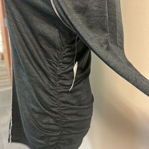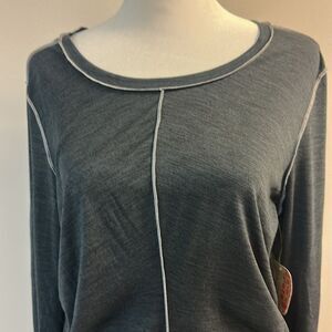 Scoop neckline, long sleeves, thumbholes