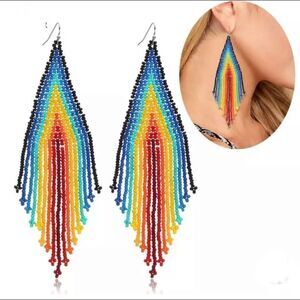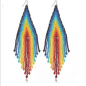 Beautiful rainbow beaded earrings. New, never worn. 5” in length.