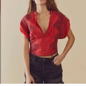 New Free People Temecula Embroidered Cropped Top Guava Berry size XS NWOT