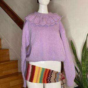 New Free People The Knitter Ruffle Merino Wool Sweater