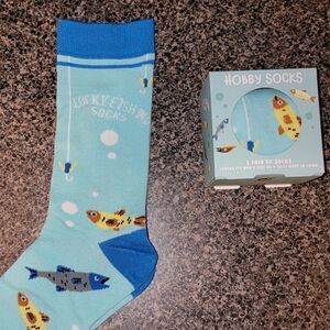 New Fun Hobby Socks My Luck Fishing 🎣 Fish Socks 2 Pair Boxed Individual Bundle