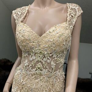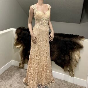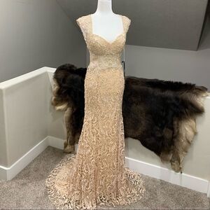 New Gorgeous Cap Sleeve Floral Lace With Beaded Gown