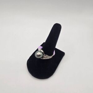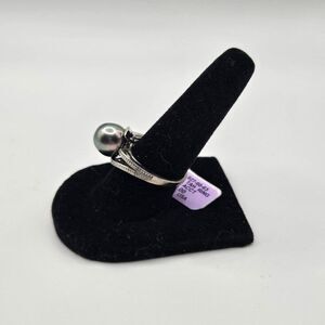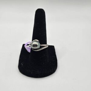 New Gray Tahitian Pearl Sterling Silver Rind Size 7 Diamond Accent 10mm