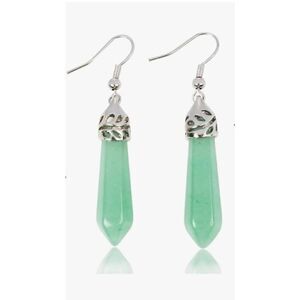 New~Green Adventurine Gemstone Chakra Healing French Wire Dangle Earrings