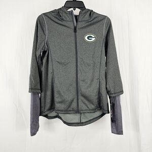 New Green Bay Packers NFL Zip Up Hoodie Girls Large Layered Funnel Neck Jacket