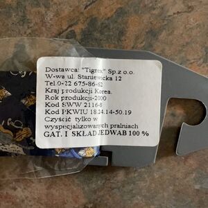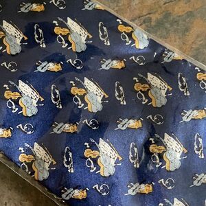 New! 100% Silk. Royal blue tie with gold, light blue, and white instruments.