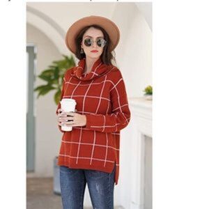 New Grid Pattern Turtleneck Knitted Jumper Sweater