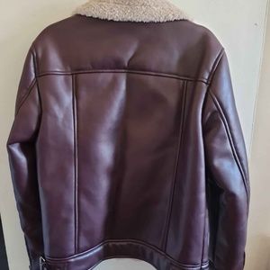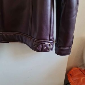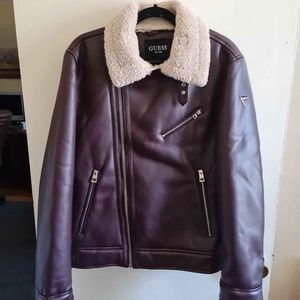 New,Guess Men Red Faux-Leather Faux-Shearling Asymetrical Motorcycle Jacket Sz-S