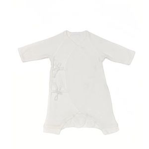 - An organic cotton HATCH newborn onesie in a soft double ply pointelle neutral soft white with adjustable ties