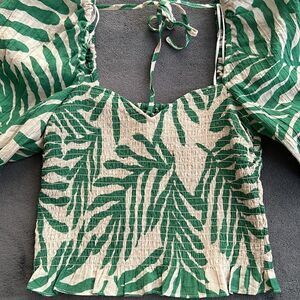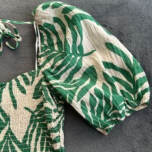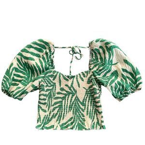New H&M Light Beige Green Leaf Pattern Smock Top Size XS