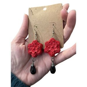New Handmade Red Flower Dangle Earrings $4 or Add To Any Order for $2