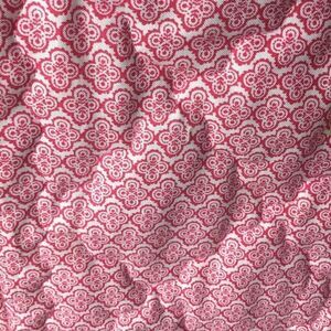 New. Handmade doll quilt is a real quilt in mini.  Featuring pinks and creams flowers mixed with pink ombré fabric, this quilt has a pinkish/reddish geometric print backing as seen in the above photos. All are made of new 100% cotton fabrics in a non-smoking home.