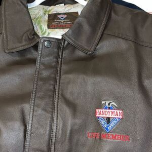 New Handyman Of America Life Member Brown Leather Work Bomber Jacket XL NWOT