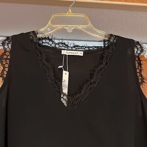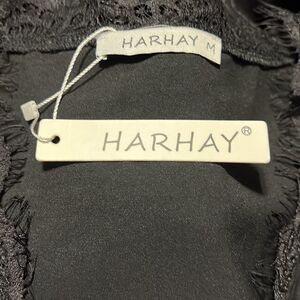 New Harhay Tank Blouse Black with fringe neck and arms Never worn Still has tags Size M 1921
