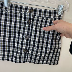 Hollister plaid mini skirt, has stretch with pockets and accents of functional buttons down front.