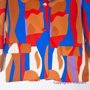 New! Hosbjerg Anthropologie Greta Adele Blazer geometric abstract print red blue, size S