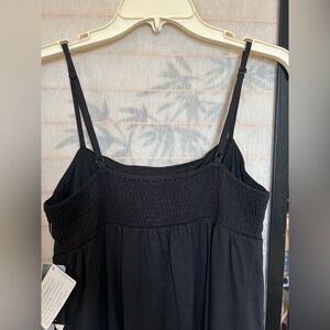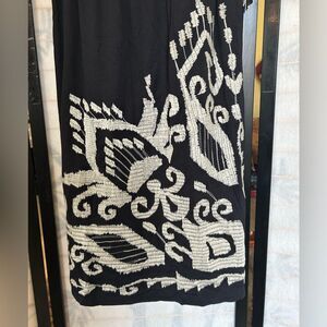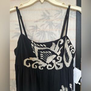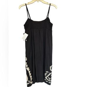 New INC Embroidered Spaghetti Strap Empire Waist Tribal Black Pima Cotton Dress