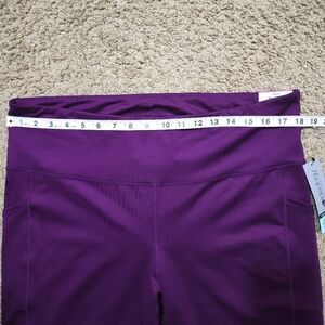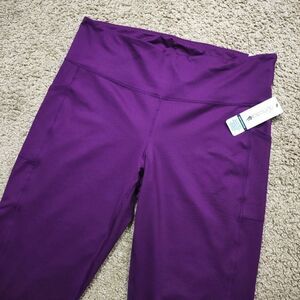 Elevate your workout wardrobe with these size 2X stylish and functional Ideology high-rise leggings. Designed for plus-size women, these cropped leggings feature a trendy plum color and convenient side pockets for on-the-go essentials. The stretch fabric and compression design provide a snug, yet comfortable fit, while the plum color adds a touch of elegance to your activewear collection. Whether you're hitting the gym or running errands, these leggings are the perfect combination of style and practicality.