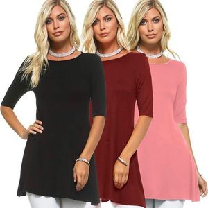 Relaxed, lightweight, minimalist solid color, scoop neck, long sleeve and a perfect length.