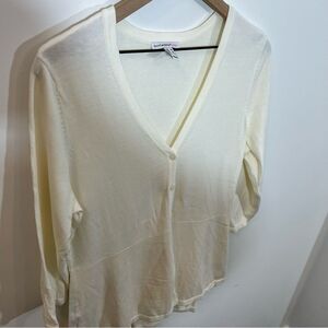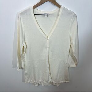New Isaac Mizrahi V neck peplum 3/4 sleeve in Cream | Size M