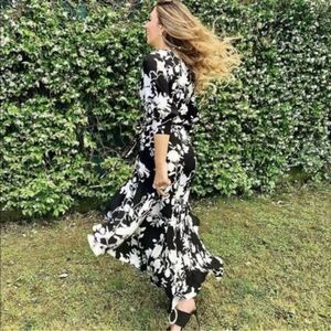 H&M Johanna Ortiz Long Crêped Wrap-front Black Wild Floral Flounced DRESS