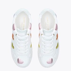 Kurt Geiger London's combines it's sell out rainbow aesthetic with a classic white sneaker in Lane Love; blending the classic low-profile trainer shape with metallic rainbow coloured hearts. The ice-white leather upper is finished with padding to the ankle for added comfort.
