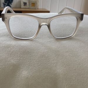 Stylish clear square glasses by Look. Perfect for a modern look. Original box, felt case and lense cloth included