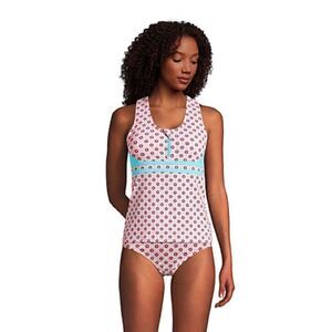 New Land’s End zip front chlorine resist tankini Wood Lilly aqua medallion mix print size Small 6-8