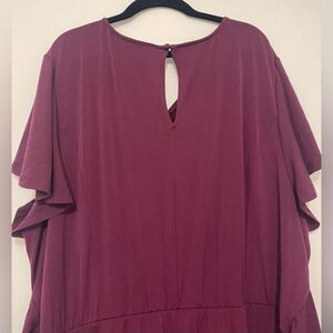 New Lane Bryant Flutter Sleeve Wrap Plum Purple Wide Leg Jumpsuit 26 / 28