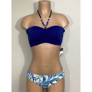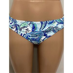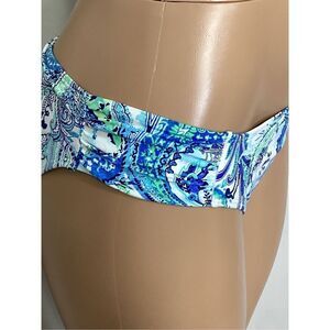 New Lauren Ralph Lauren bead and paisley bikini. Beautiful, high quality fabric and materials. Beaded halter strap that ruches the fabric down the front. Adjustable, Soft formed cups. Adjustable strap in the back. I love this Ralph Lauren top. It’s so pretty! Paired with paisley swirl. Ralph Lauren bikini bottom. Ruched side tabs. Fully lined. The bottoms do not have their tags that has the hygienic liner intact.