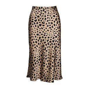 New Leopard Midi Skirt Waistband Silk Satin Skirts