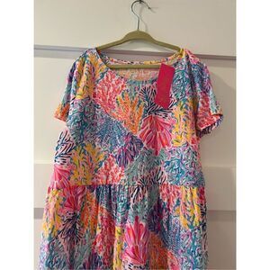 New with tags. Size XL (14-16). New Lilly Pulitzer Mini Geanna Short Sleeve multi Splashdance dress. Length is 30”