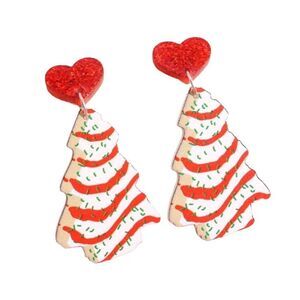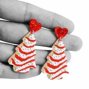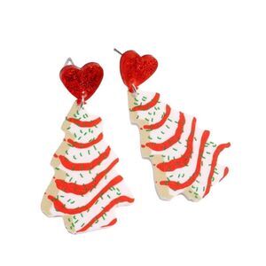 New Little Debbie Christmas Tree Snack Cake Earrings Vanilla Sprinkles Funny