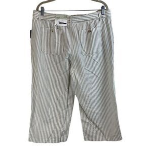 New Liz Claiborne Linen Flax Stripes Cropped Capri Pants Size L