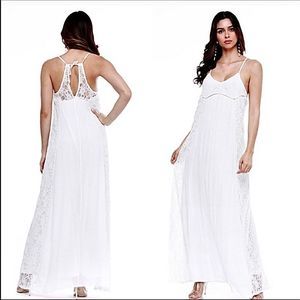 This New Long White Lace Open Back Summer Maxi Dress is stunning & will be a summer wardrobe favorite!