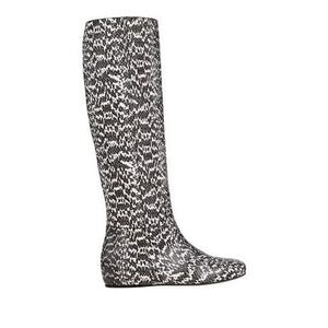$986 New Longchamp Leather Knee High Boots in Black/White. Sz 37 -US 6.5. No box. No dust bag. Item made in Italy. Flat but has hidden wedge - is about 1”. Two-tone, Round toeline. Pull on buy had zipper on ankle keg.