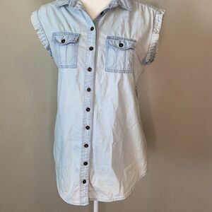 New Look Light Wash Sleeveless Button Up Shirt Small