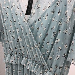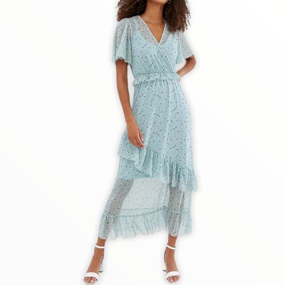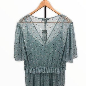 New Look Mesh Frill Blue Floral Ruffle Dress NWT