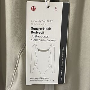 NWT- seriously soft nulu fabric, gray color, long sleeve, thong bodysuit. Perfect for athleisure wear or with jeans.