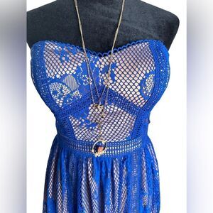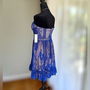 RYSE by lulus Jade Royal Blue and Nude Lace Strapless mini dress size small
