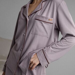 Limited edition color that is sold out- Dawning Mist/Fresco BurgundyTop has front button closure; notched collar; long sleeves; chest patch pocketPants have elastic waist57% Tencel® modal, 38% organic cotton, 5% spandex with 60% Tencel® modal, 40% organic cotton contrastTencel modal is a more-sustainably produced fiber made with closed-loop processing and is certified with the EU Ecolabel as having a low environmental impact throughout the entire lifecycleMachine wash, tumble dryImported