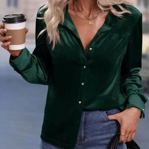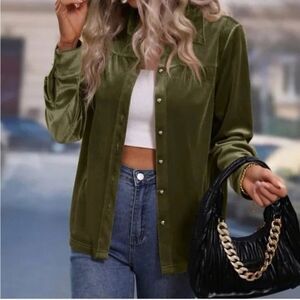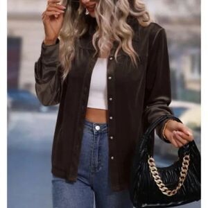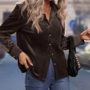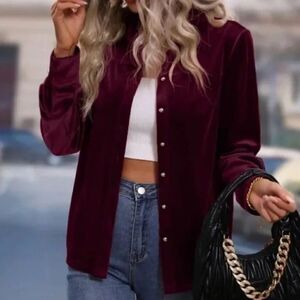 New Luxe Burgundy Velvet ButtonâDownâOversizedâShirtâTop