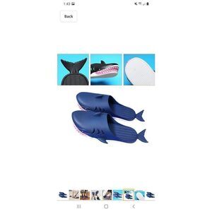 New, Never Worn Unisex Men's Size 8.5-9.5 Women's Size 10-11 Blue Funny Shark Water Shoes Beach Pool Shower Summer Slides Slippers- Tags Attached to Outer Plastic