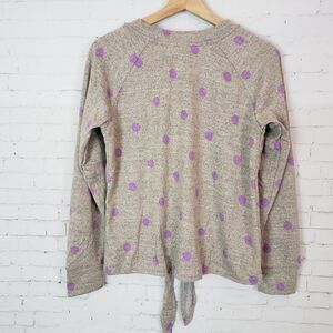 New without tags MINE polka dot sweater size small. Tie up detail at the front hem. Soft cozy fabric. Gray/brown color with purple polka dots.