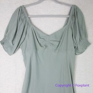 New! Madewell Sweetheart Puff-Sleeve Midi Dress in frosted sage, size 6