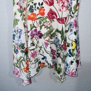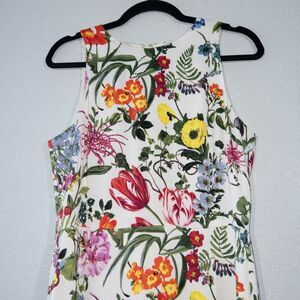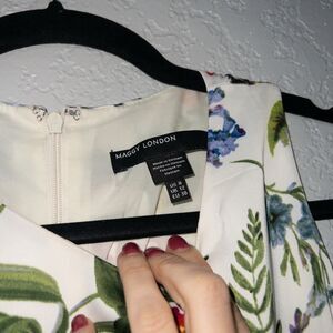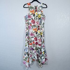 New Maggy London White Botanical Floral Print Charmeuse Midi Dress 8